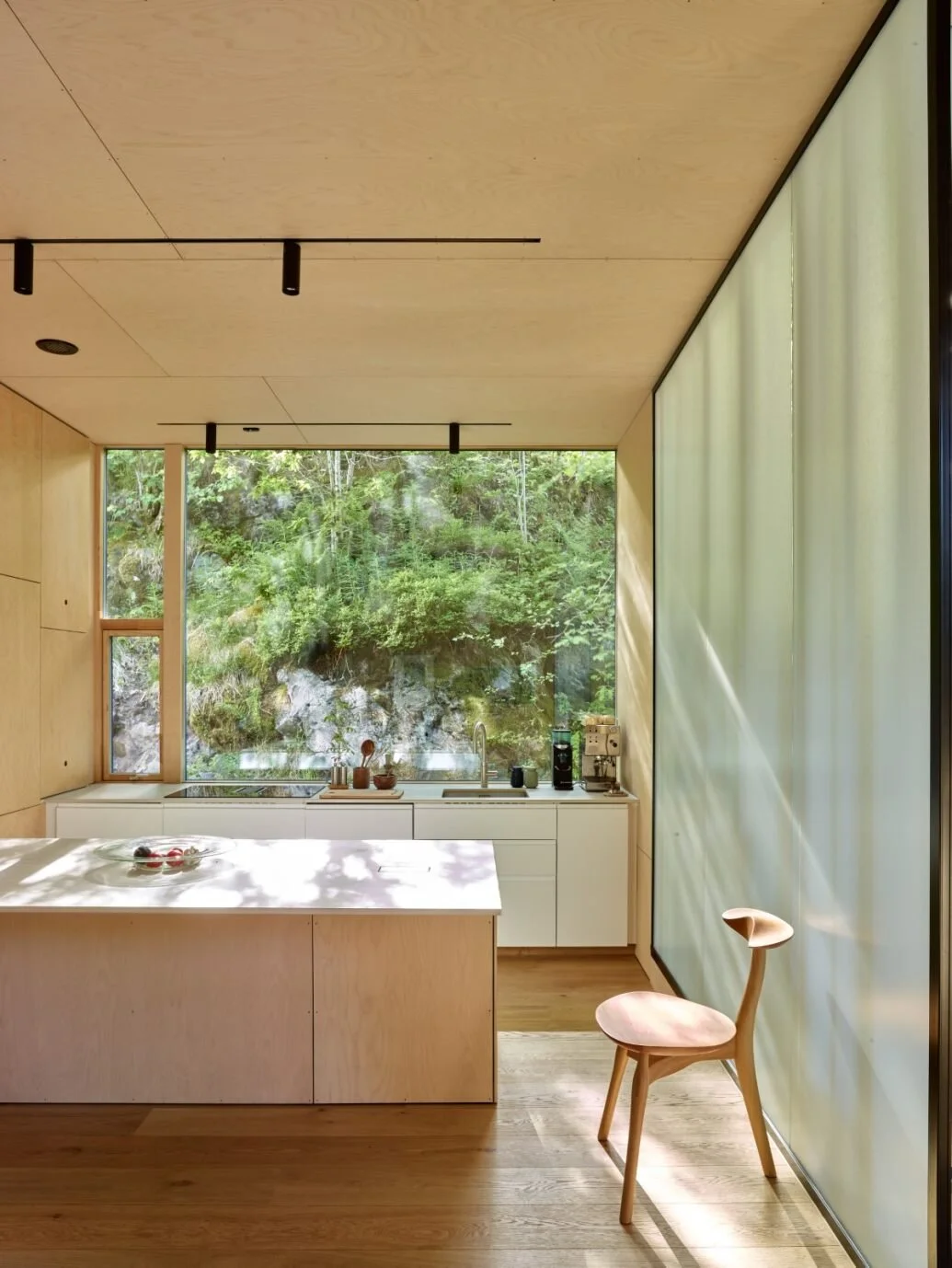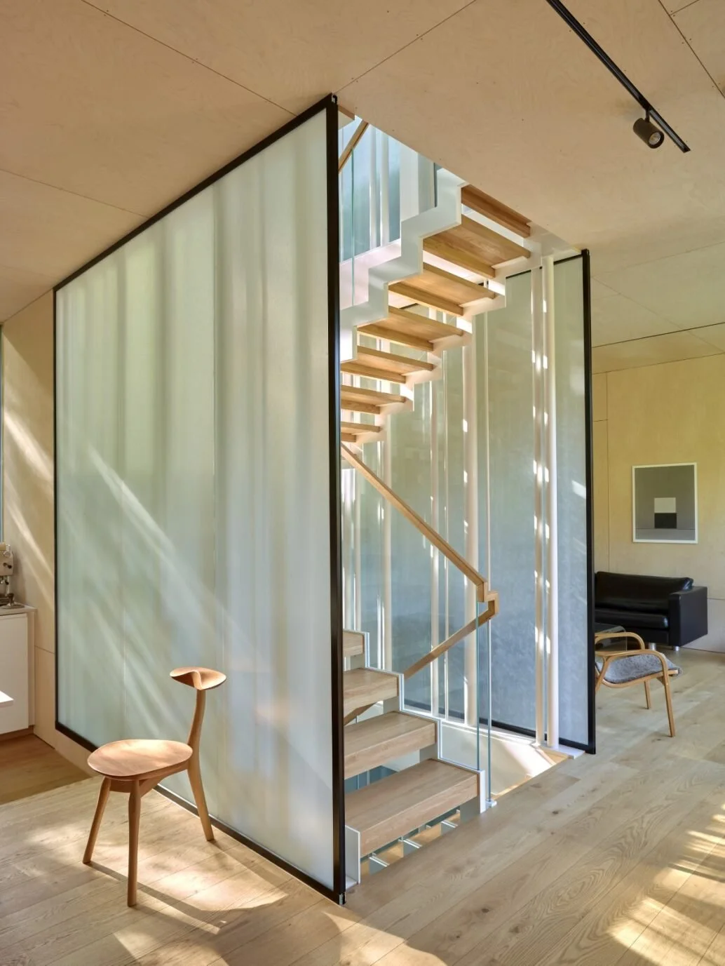Den bærende ideen er opplevelsen av å bevege seg fra dunkel skogbunn, opp gjennom bladverk og trestammer, til himmellyset i toppen av trekronene. Det som filtrerer og trekker dagslys inn er et lagvis transparent trapperom i midten av huset. Skyggespill, farger og forskjellige forhold til omgivelsene gjør at de ulike etasjene har svært ulik stemning.