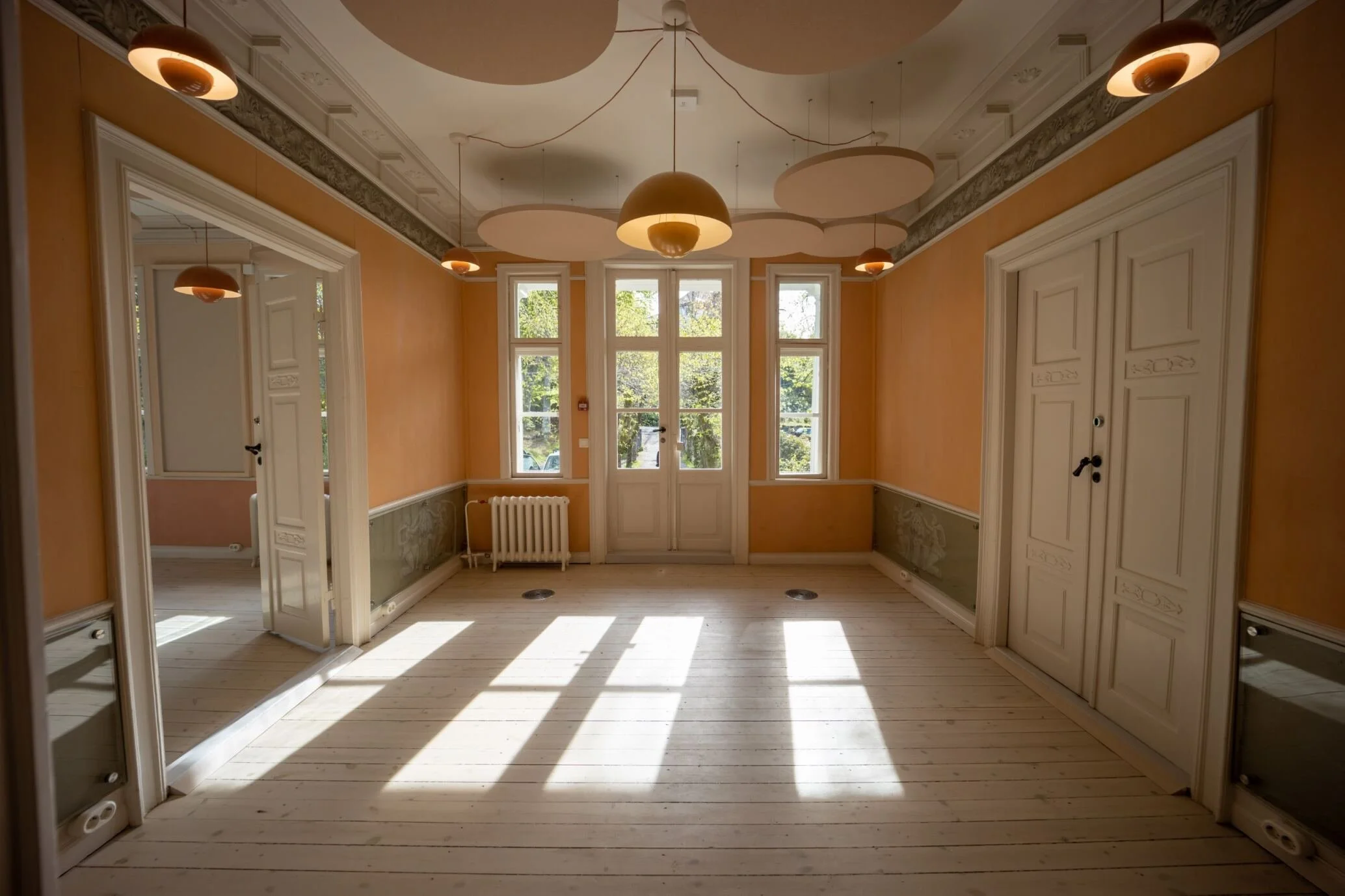 Gjennom etterligning og påvirkning av omgivelsene inspireres barnet til læring og utvikling. Sentralt er gode, dype sanseopplevelser gjennom estetikk og kvaliteter i barnets opplevelser. Taktile overflater, en balansert fargesetting, og visningen av de historiske detaljene bidrar til en helhetlig, lett, åpen og sanselig atmosfære for barna i en samtidig verdig estetikk for huset. De opprinnelige sjablon/håndmalte tapeter har delvis blitt integrert i barnehageinteriøret, men ligger beskyttet i barnehøyde. Sirkelformede akustikkplater er med på å skape en lavere himling og et lekent spill i de formelle rommene hvor fredningsstatus har gitt begrensninger, men også logiske føringer for noen tilpasning av planløsning for å imøtekomme krav til bl.a. universell utforming, brann og akustikk.